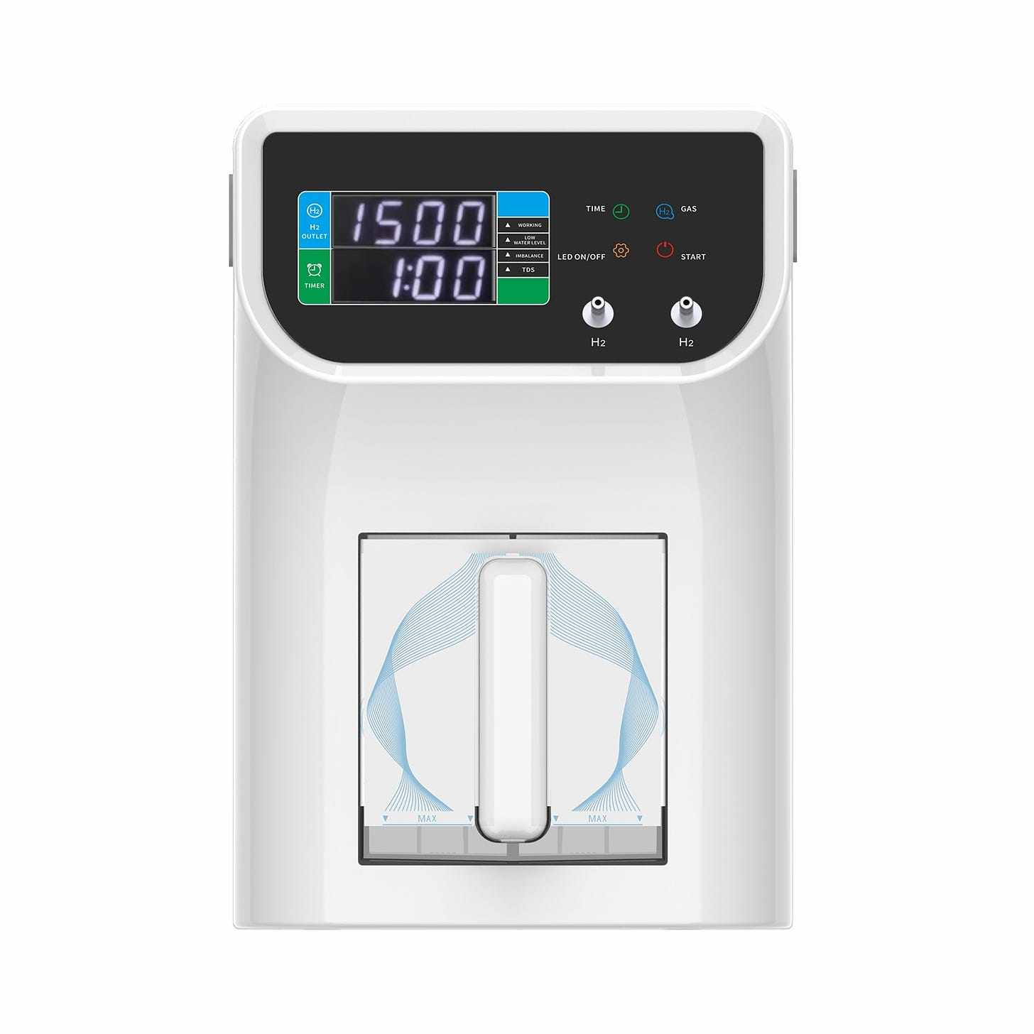 Like all our hydrogen inhalation machines can be set up to use pure hydrogen, hydrogen-oxygen mixture or pure oxygen as needed. High-quality silicone nasal cannulas, connecting tubes and adapters are included to use the machine as a inhaler and bubbler attachment to make HRW.